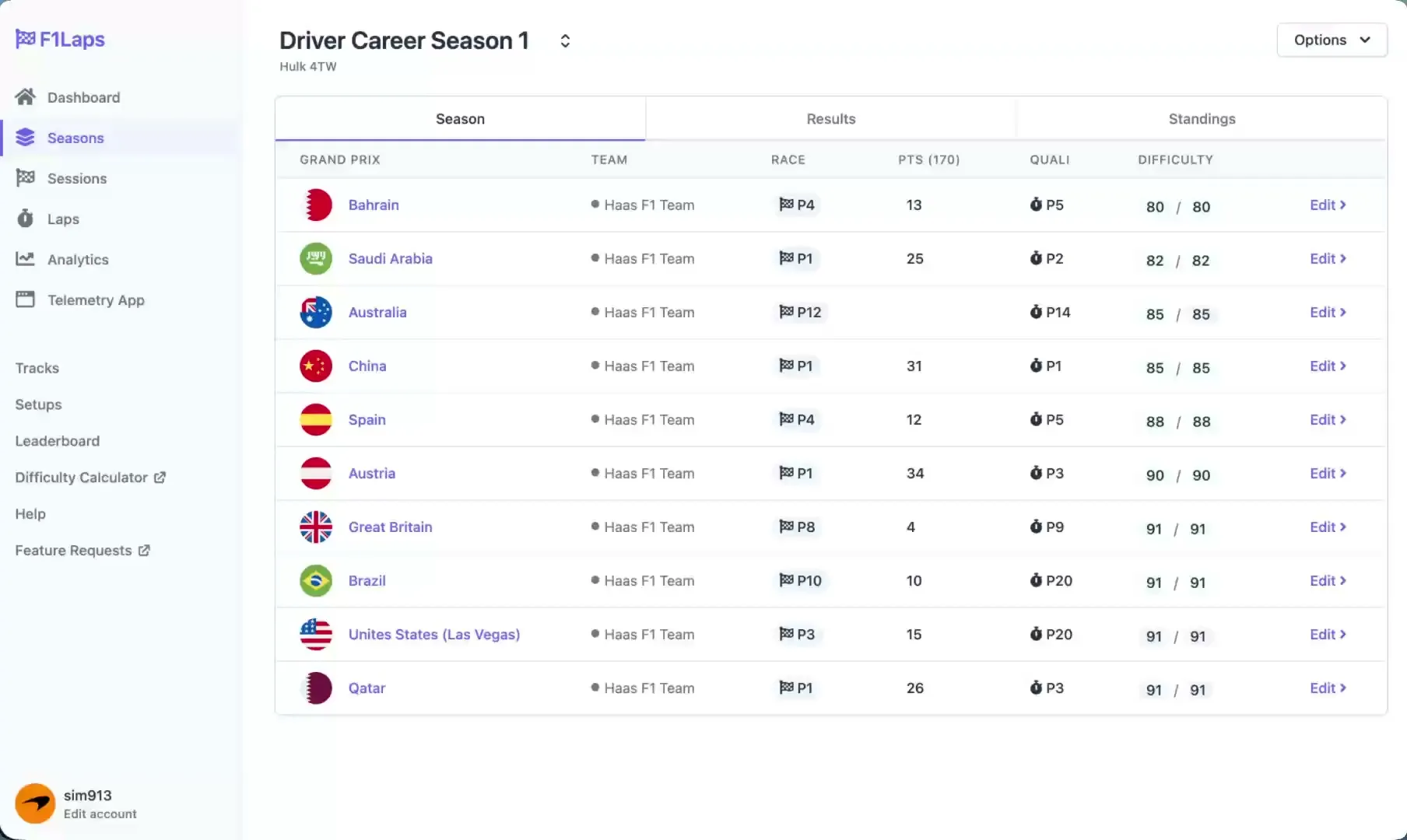 by u/DodgyAu from discussion End of my first season using the F1Laps difficulty calculator. Good battles with Haas, Alfa and Alpine.