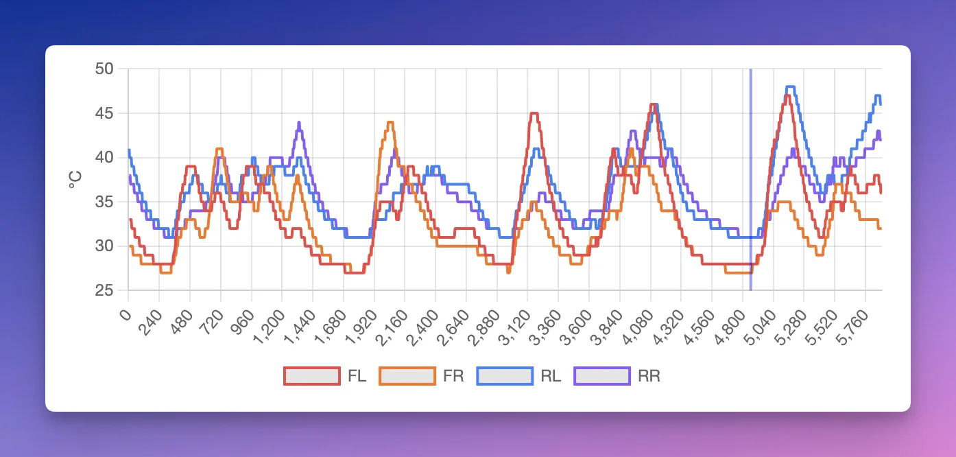 - Refine your driving: Aggressive inputs spike temperatures - compare your temps to faster laps to find where you're pushing too hard